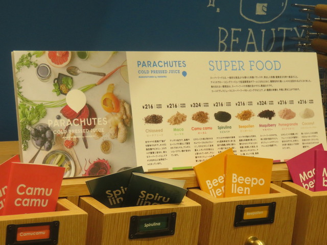 しかしよく見ると果物屋は「hanafru」なんですが、コールドプレスジュース専門店「PARACHUTES(パラシューツ)」となってるので、厳密にはhanafruではないようです(よくわからん)