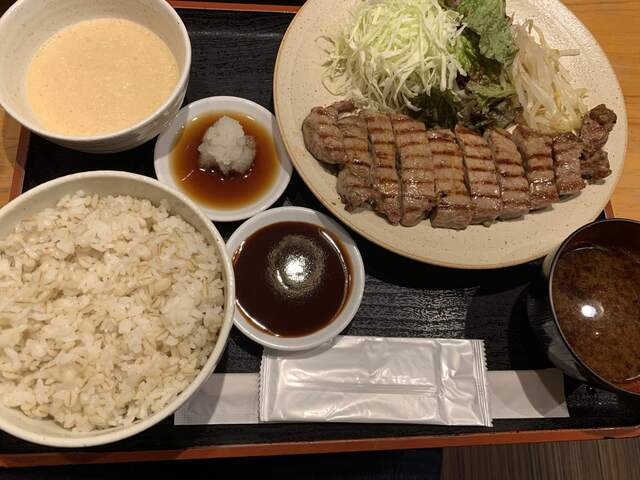 名古屋パルコがある大通りから路地に入ったところにある。こんなところに道があったのかと少々驚く。 開店直後の平日17時に訪問。時間が早かったためか、前客・後客ともに0人。 店内は清潔感あり、とても栄とは思えないような落ち着いた雰囲気。 ・国産牛上リブロース塩焼き定食二枚 1850円 麦入り... 続きを読む»