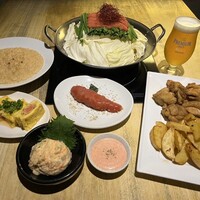 【飲み放題2時間付き】 1.明太子 2.明太子ポテトサラダ 3.明太子の玉子包焼 4.(唐揚、ポテト)明太子ディップ添 5.明太モツ鍋 6.明太チーズリゾット