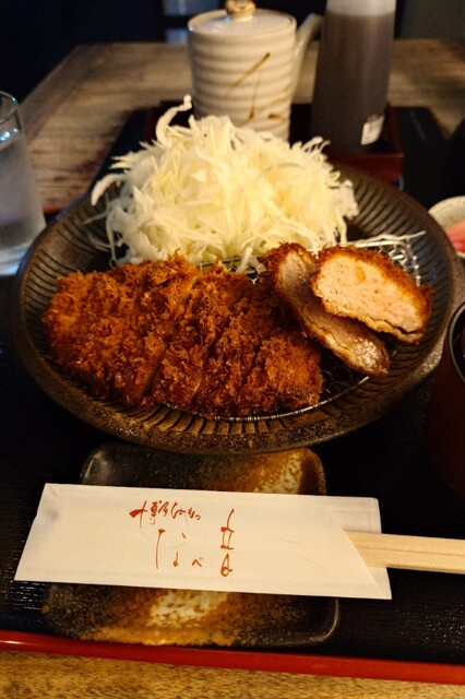 伏見から丸の内エリアはビジネス街、官公庁街ということもあり「安く」「美味しい」ランチのお店がひしめいている。その中でもコスパNo. 1の一角がこのなべ音。夜は博多のもつ鍋のお店なのだが、お昼はトンカツ屋さんである。
