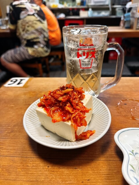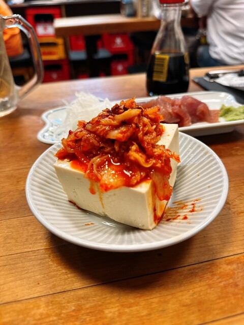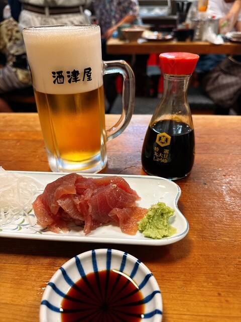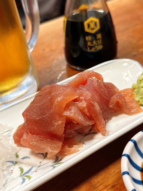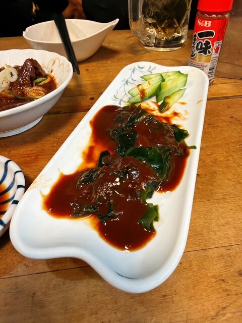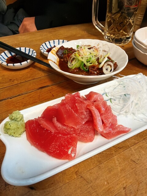お酒のアテは、まぐろ、どて、味噌わかめ。私は既に3軒目だし、これぐらいがちょうどいい。