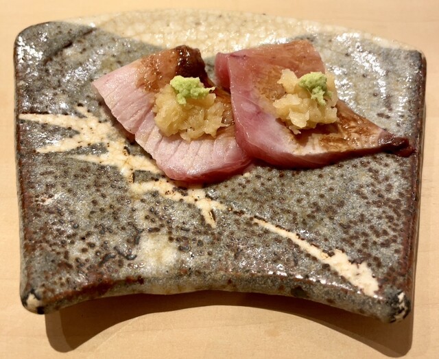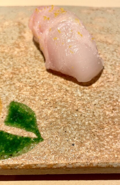 握り:かわはぎ、まぐろ二種、ぶり磯部