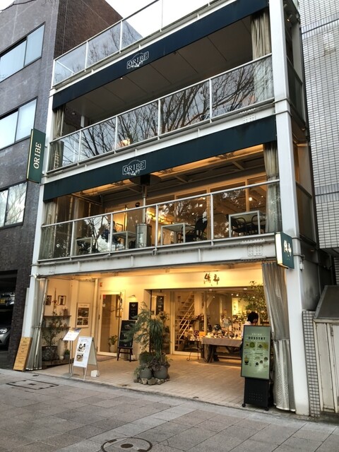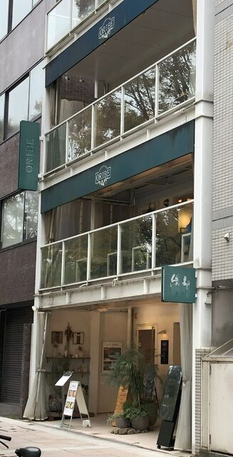 久屋大通公園の北の端のあたり、公園東側の道路の向こう側に美濃焼の「織部」さんのビルがあって、1Fがショップ、2Fがギャラリーとカフェになっています。自分がこちらで目指すのはカフェのテラス席、外からテーブルの埋まり具合が分かるので、テラスのお客さんが1組までなら2Fに上がります。