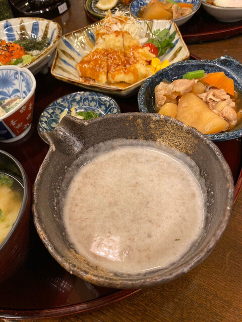 友人のオススメでラシック内にあるとろろのお店に行ってきました。 平日の夜でしたが、女性グループで賑わっていました。待ちが出るほどに人気のようです。 メニューは看板メニューの麦飯+とろろに、肉系や魚系のおかずが付いた定食がいろいろありました。迷いましたが日替り膳にしました。豚しゃぶのトマトソースがけと、小鉢に揚げ野菜のあんかけ、ひじき、お野菜の胡麻和え、サーモンとオクラの和え物等つきます。ひ... 続きを読む»