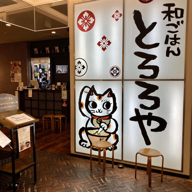 栄・ラシック『8F』★大きな猫が目印です♪和ごはん「とろろや」の名物は日本原種の希少な黄金自然薯を使用した人気の『とろろ汁』♪他ではなかなか食べることができない逸品です♪山の風味豊かで喉ごしがたまりません。美味しい…。栄養豊富で消化にもいい自然薯です!また、ご飯のお供に、バランスの良いおばんざいの小鉢と、お好きなメイン料理でお召し上がりください。 『ご飯・おかわり自由!』です。