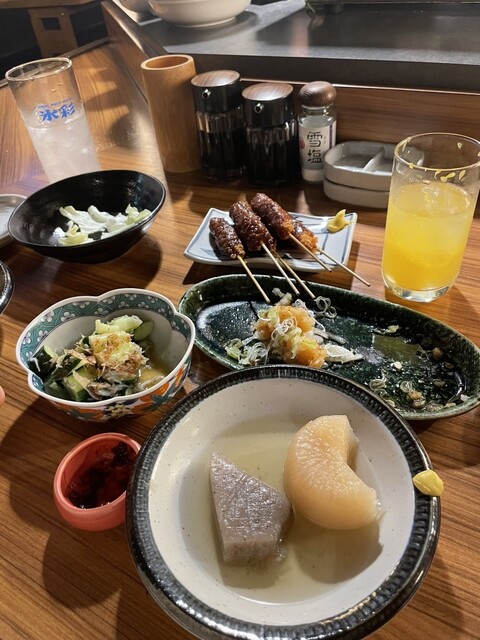 おでんの盛り合わせ、鶏わさ、串カツなど色々...