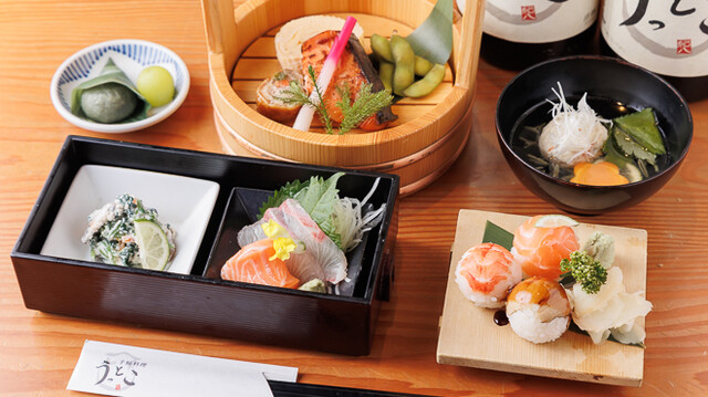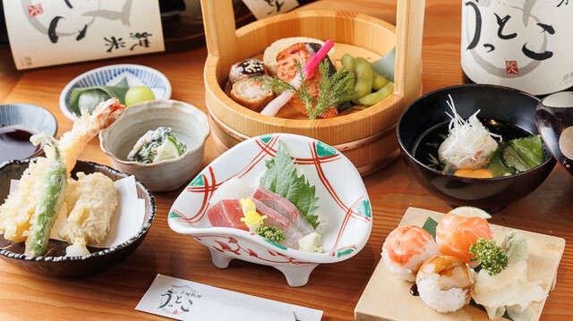 旬の味覚を盛り込んだ華やかな和食を楽しめるお店です。海の幸や山の恵みを少しずつ楽しめる伝統の手桶料理や、季節のかご膳が訪れるたびに新しい発見をもたらします。名古屋の地酒を中心に豊富な日本酒も取り揃え、初心者にもぴったりなオリジナル日本酒「うっとこ」もおすすめです。お買い物帰りの女子会やプチ宴会にぜひご利用ください。最適なテーブル席や掘りごたつの半個室で、ゆったりとしたひとときをどうぞ◎
