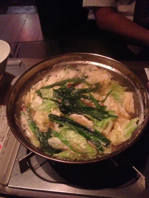 錦にあるもつ鍋、九州料理のお店、細い階段を降りたビルの地下に入口があり、店内は薄暗い照明で感じのいいお店、カウンター4席と掘りごたつ席が10卓程度の広さです。前にも入ろうとしたことがあったのですが、その時は予約で一杯、2度目のチャレンジです。今回は月曜日だったので大丈夫だろうと思っいたのですが、ほぼ満席、かろうじて1つだけ空いてた席に座ることができました。 メインのもつ鍋の味はしょうゆ、... 続きを読む»