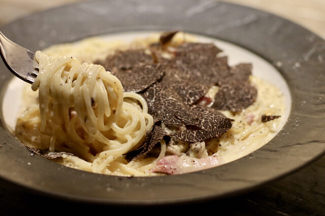 贅沢なカルボナーラは超濃厚で風味も良くて