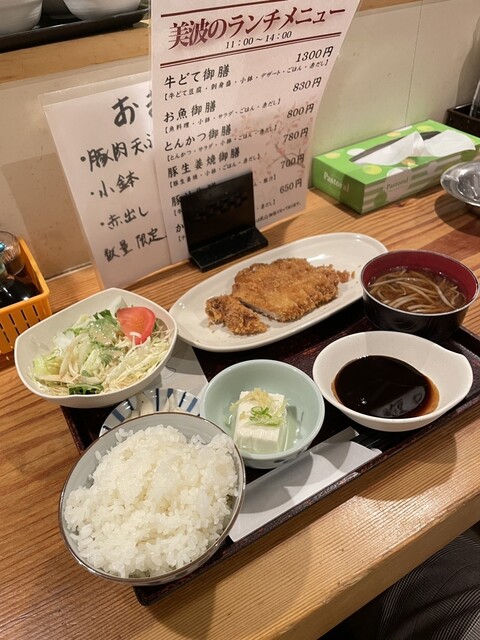 ⭐️ランチは、11時から14時で6種類の美波のランチメニューとおまかせ御膳930円がある!11時50分満席❗️12時15分座席に空きでる。