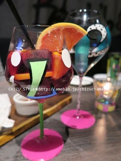 ハンドペイントのグラスがとってもCuteサングリアでかんぱ~い