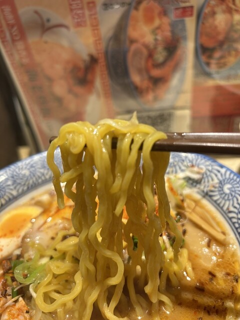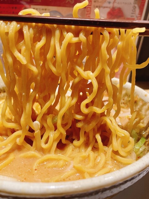 北海道から仕入れたぶりぶり縮れた固茹で黄色麺に