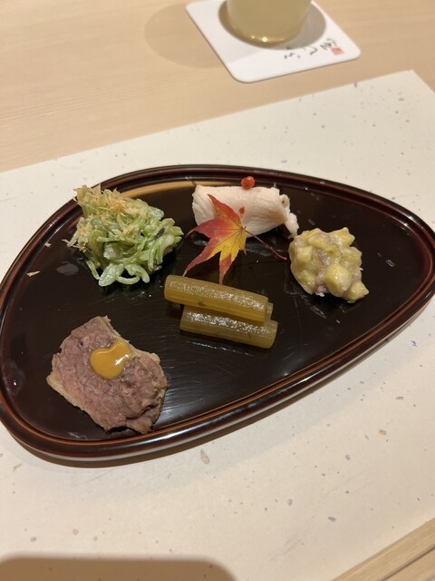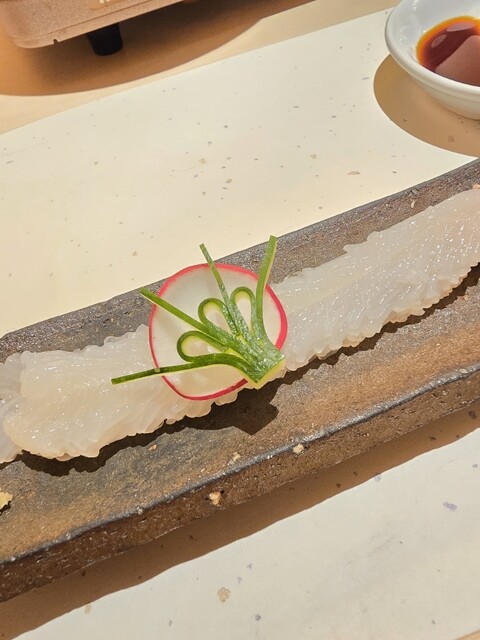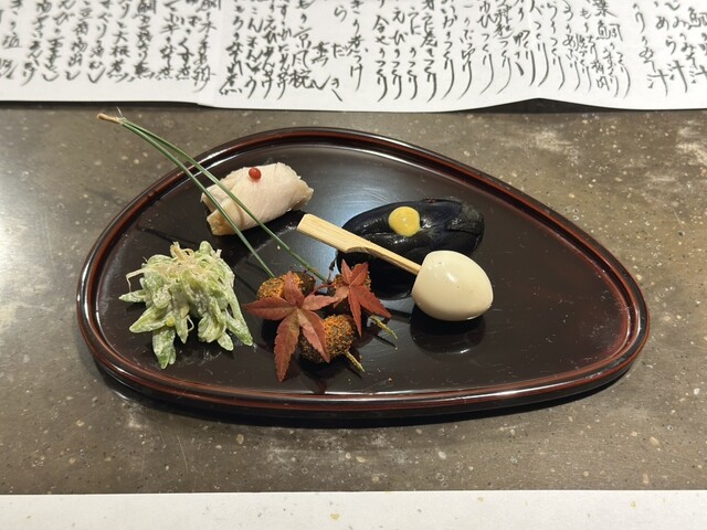 ビジネスディナーで4人で伺いました。再訪になります。こちら、とってもながーーーーーいお品書きから、何品かお願いするスタイルで、大いに悩みます(笑)。でもとても楽しいですよ、先付けに加えて、カラスミ大...