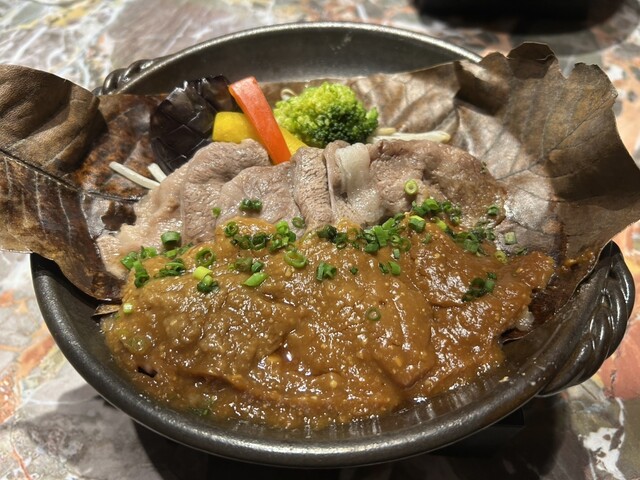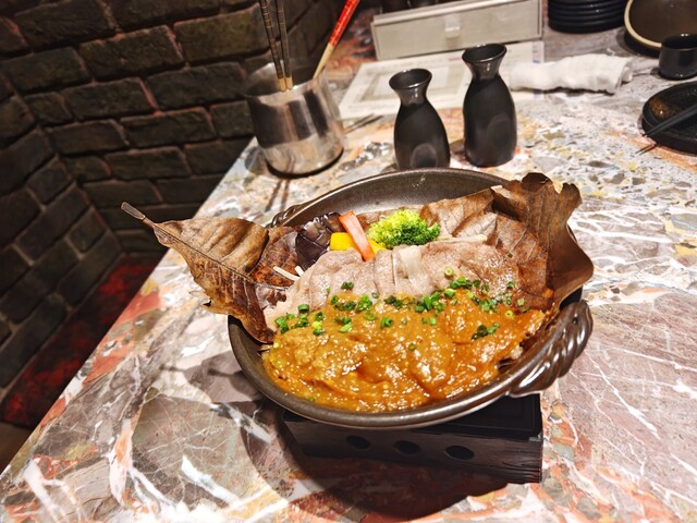 ①飛騨牛 棒葉味噌の陶板焼き