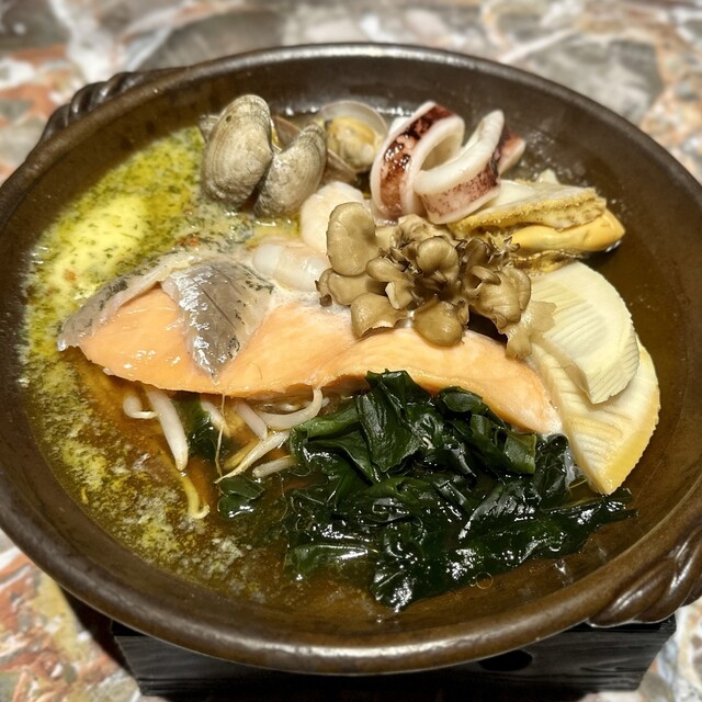 ②海鮮バター醤油の陶板焼き