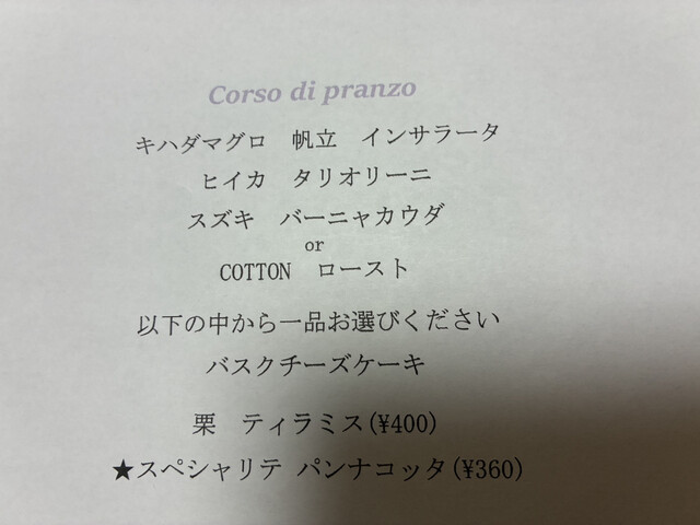 イタリアンのコースは久しぶりだ。