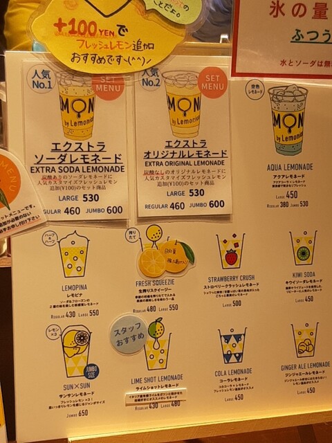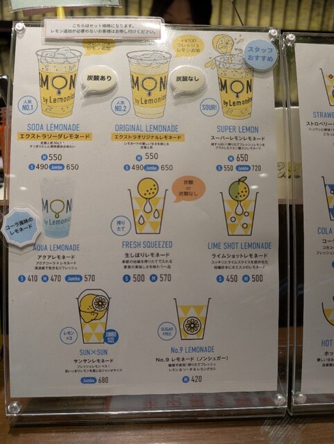 エクストラソーダレモネードを購入。松坂屋アプリのクーポン特典で、1サイズアップ(Mサイズ¥550がSサ...