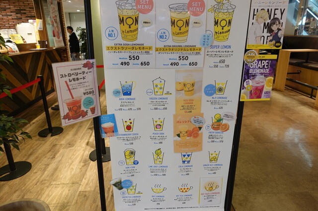 レモネード専門店です。たくさんの種類のレモネードがあり、レモンのすっきりした甘さがお気に入りです。