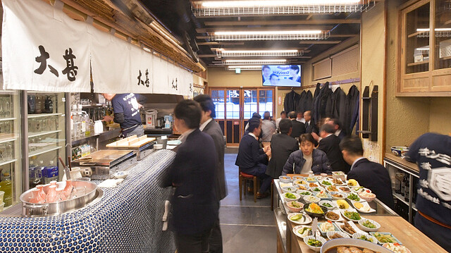 名古屋・伏見にて明治40年から、実に100年以上も愛され続けている居酒屋【大甚】の錦店が2019年11月19日、ついにオープンしました♪毎朝仕入れている新鮮な素材を使用した日替わりのお惣菜やお刺身をリーズナブルな価格にてご提供。こだわりのお料理と共に美味しいお酒もお楽しみ下さい!12時開店で昼呑みにも最適◎活気ある店内はどこか懐かしい雰囲気で、居心地の良い空間となっています。
