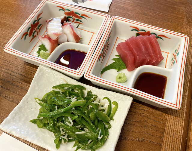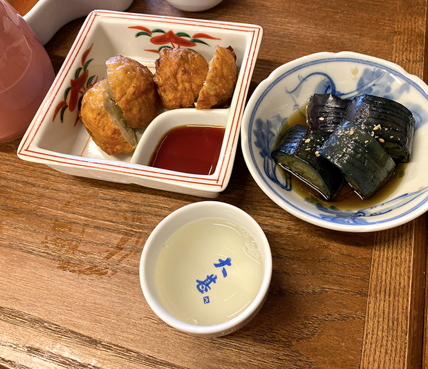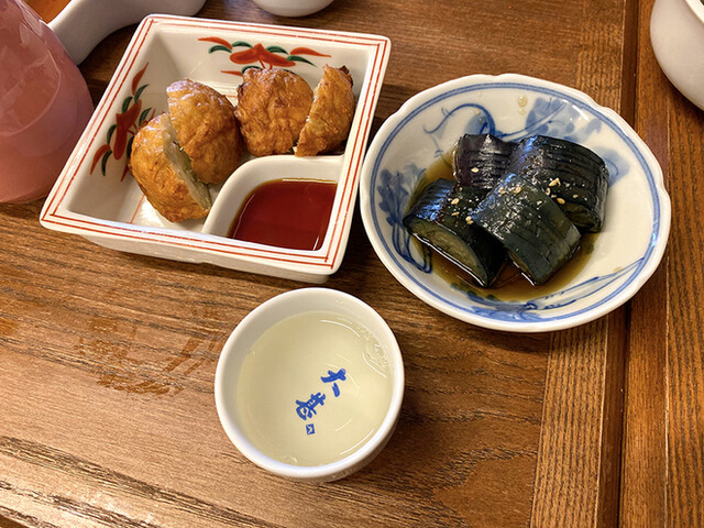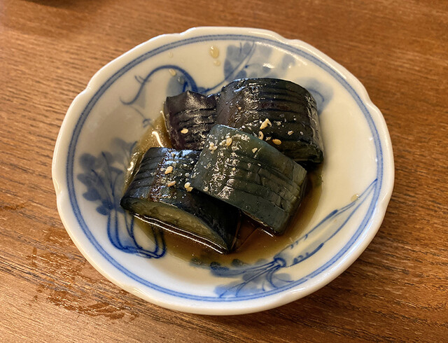 17時に入店し、話を聞いていると同業らしき?団体10名ほどと、他に何人かのお客さん。カウンターの奥に案内され、小皿を勧められた。小皿を選ぶのが楽しい。迷ったけど2皿にしておき、きゅうりしそ巻と茄子揚げびたし。どちらもか...