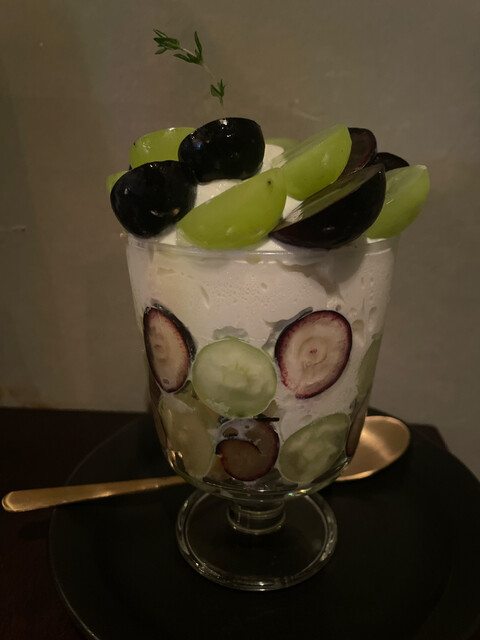 この日は桃、いちじく、シャインマスカット、パイナップルなど数種類のパフェがラインナップされていました。