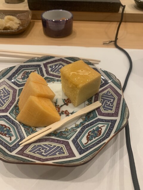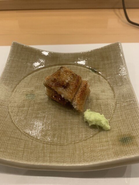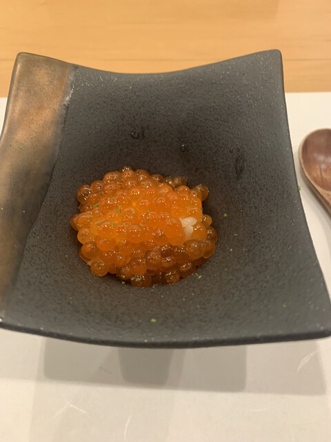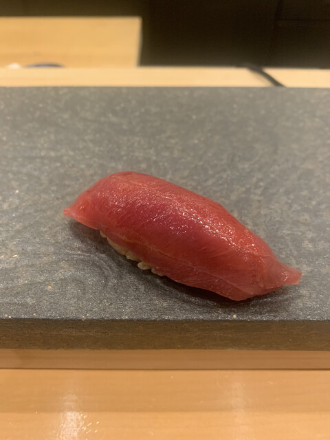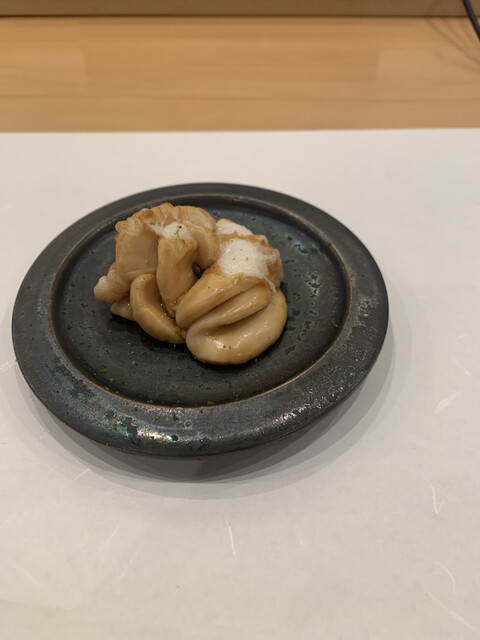岡山大将は、名店「あま木」で修業され、テンポよい握りは、しっかりめの赤酢のシャリでネタもよく、鮑の肝を使った稲庭うどんやデザートのような玉子焼きなどおつまみも一手間かけられています。