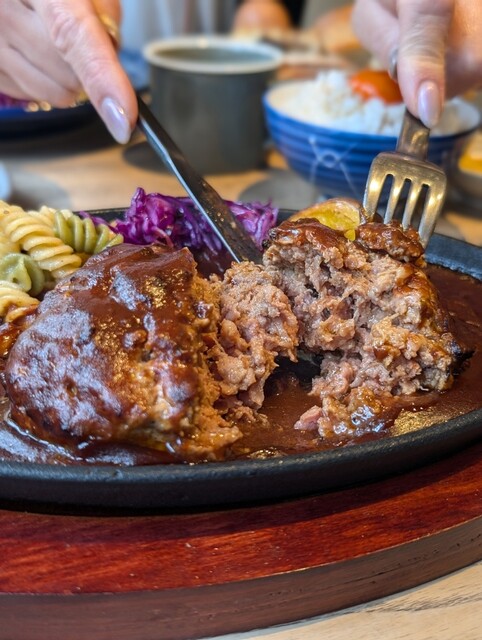 肉汁たっぶりの手ごねハンバーグと特製ソースが楽しめる♪
