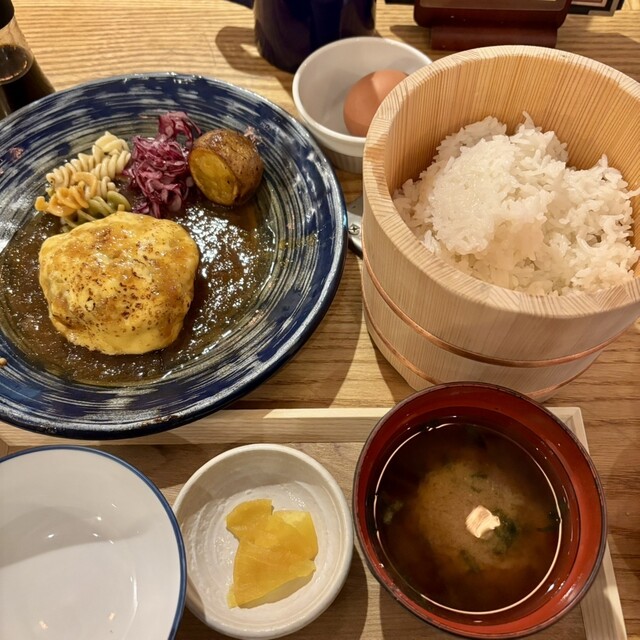 ふっくら炊きあげたブランド米や期間限定でコラボ店が変わるこだわりパンなどハンバーグとともにお好みの組み合わせでお召し上がりください♪