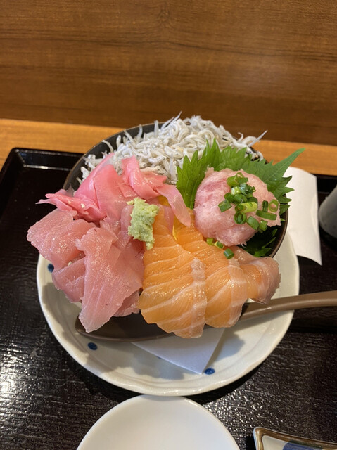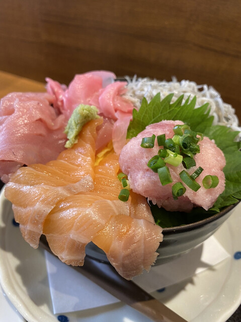 2022年9月土曜ライス 食べログ3.05 キングサーモンの4色丼¥1.100 11時30分過ぎ入店(開店11時) 近くの有伝亭が目的でしたが臨休?のためこちらを訪問 ... 詳細を見る