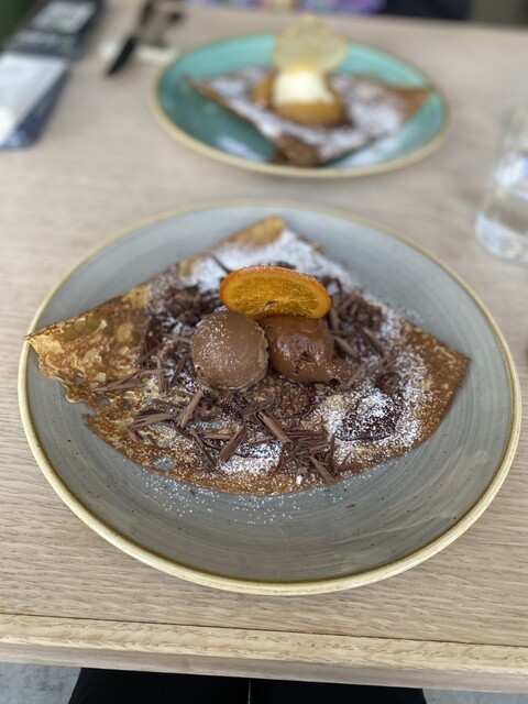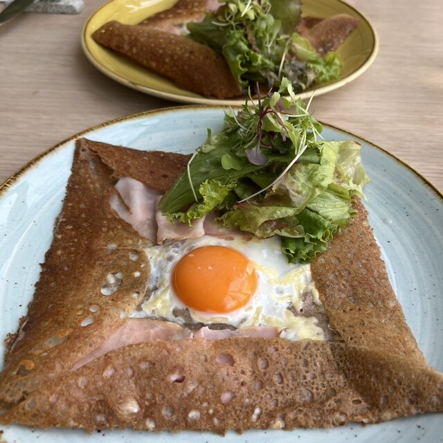 フランス・ブルターニュを思わせるお洒落な店内は、女子に人気。一面ガラス張りで、緑も多く開放的。そば粉のガレットや、見た目にもかわいいクレープもおすすめ。がっつり国産豚ロース肉とリンゴのグリルなど主菜もご用意しています。ガレットに欠かせないシードルの種類も豊富。自然派ワインもあり。「しっかり食べたい」「ちょっと飲みたい」「おいしいクレープでカフェ利用」などなど、様々なシーンでのご利用をお楽しみ下さい
