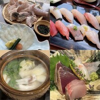 ●てっぴサラダ ●刺身 ●てっさ(フグ刺身) ●てっちり小鍋 ⚫︎握り(フグ握り付) ⚫︎巻き寿司 ⚫︎赤だし ※季節や入荷状況により 内容が変わる場合がございます。