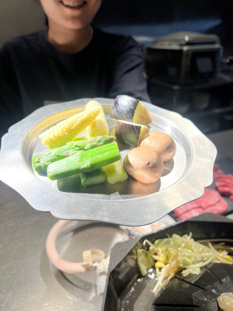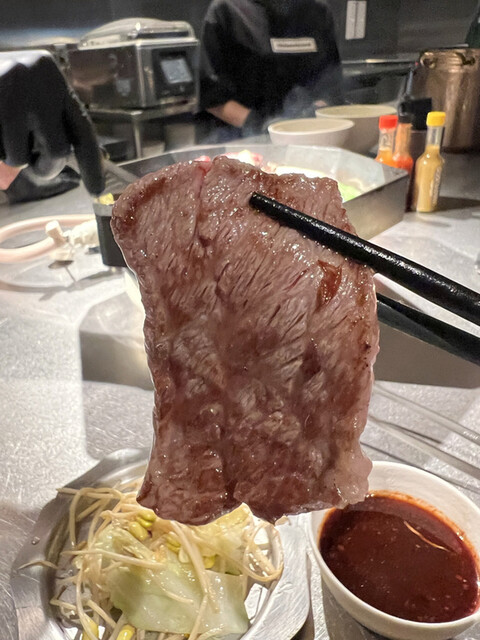 こちらの焼肉屋さんでは、牛肉をジンギスカン風に楽しむことができ、その特殊なスタイルにワクワクしました♪