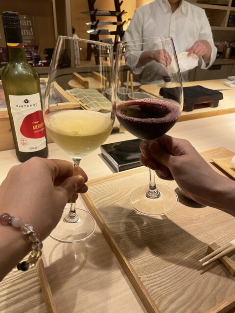 ノンアルコールの白で乾杯してこの日頂く沖縄産本鮪10キロの美しい姿を楽しみます。
