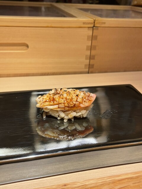 炊き立てのはつしもに付いているおこげを外し赤酢と合わせた酢飯がこっくりしていて好きなタイプ。