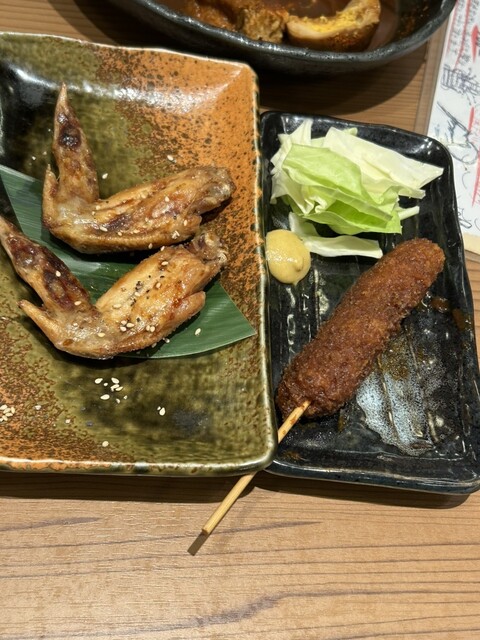 ここはなごやめしを堪能できるお店。世界の山ちゃんや風来坊と違うのは、ひつまぶしがあるところ。ここはキャベツがおかわり自由。つけるのは味噌だれ。これが甘めで美味。味噌串カツ、手羽先、ひつまぶし、味噌煮込みおでん等々を頂く。注文はタッチパネルなのだが、ちゃんと紙のメ...