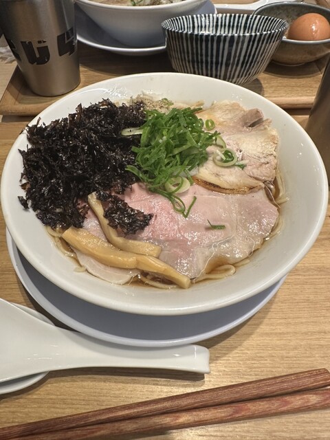 日曜の11時ごろ伺いましたが、店内は空いていて、静かで落ち着いた雰囲気。綺麗な店内。 貝出汁のラーメンを注文し、味玉を追加。 卵にこだわりがあるようですが、味玉だとあまり違いはわかりませんでした。 肝心なラーメンは貝の出汁がしっかり感じられて旨みが凄い。麺は細麺でスープによく合います。 個人... 詳細を見る