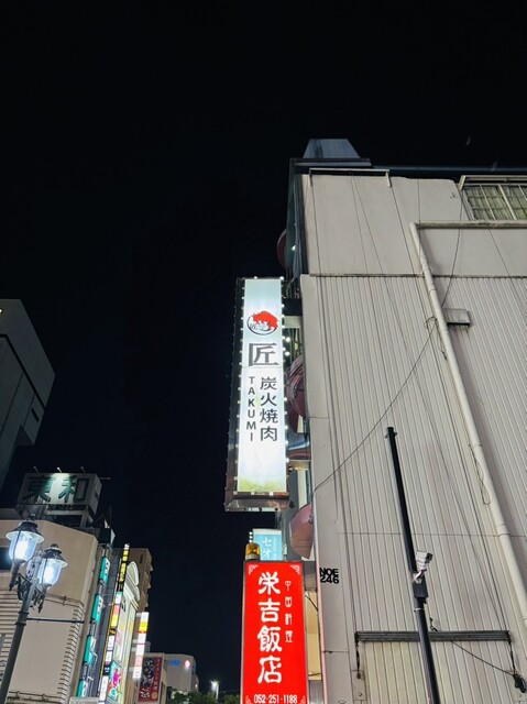 栄駅から徒歩7分程のところにある炭火焼肉が楽しめる「炭火焼肉 匠」さんへ。どの部位を食べても凄く美味しかったですし、朝5時まで営業しているので、2軒目などにもオススメです。あと喫煙者には朗報で、店内で...