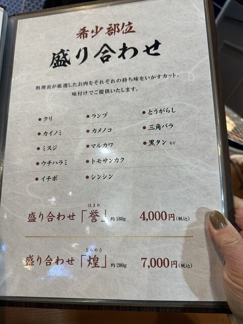 ●希少部位盛り合わせ「誉」4000円