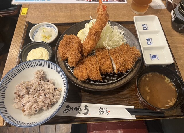 1時間のランチで真っ先にこちらへ向かいメニューをパッと目を通しエビフライ、ロース、ヒレカツが頂ける"まめとんランチ"を迷わず注文。