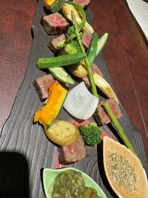 お肉がおいしくて、それに合わせて店員さんが選んでくれた赤ワインが、とても重くておいしかった。お肉に合ったおいしいワインを久しぶりに堪能できて幸せでした~~!