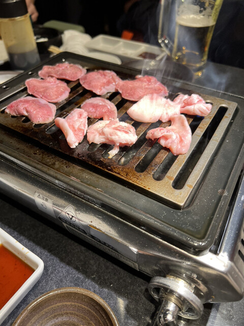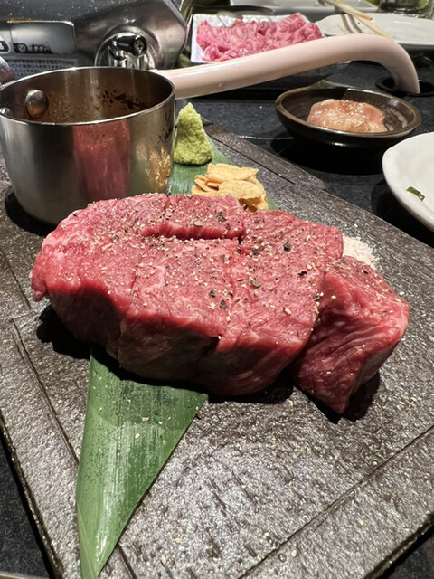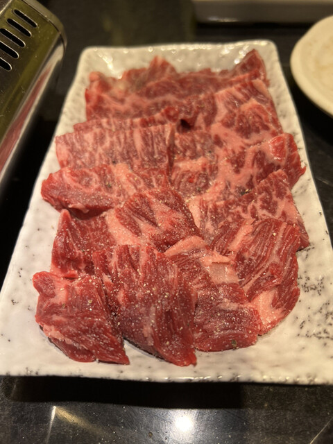 一階が精肉店で2階が焼肉屋さんになっていて、半個室のお席があり奥が個室、照明暗めな落ち着いた雰囲気✨
