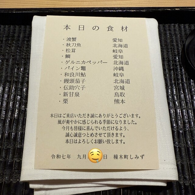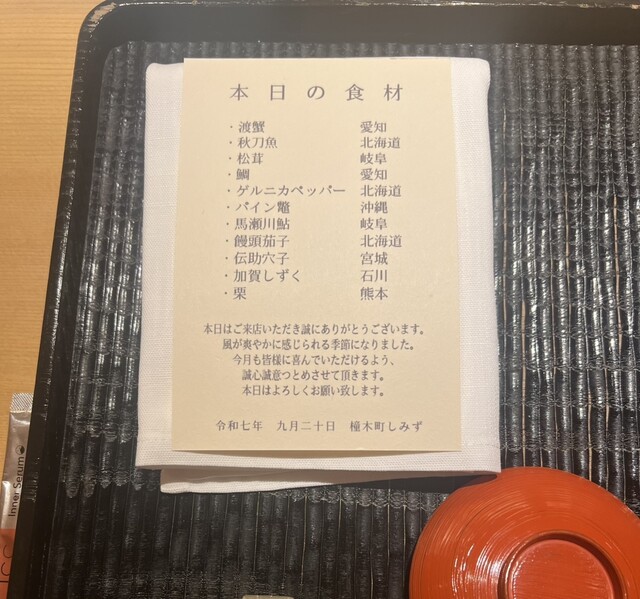 この日は秋の入り口の日だったこともあり、秋の食材全て使っているのではと思うくらいのフ...