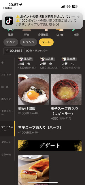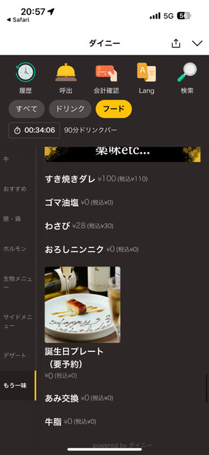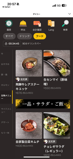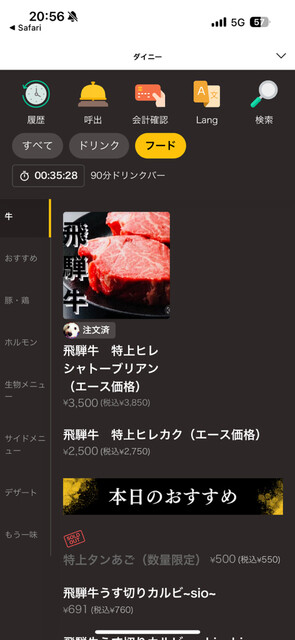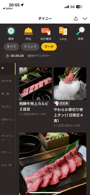 最初に1皿しか頼めないんだけど、
