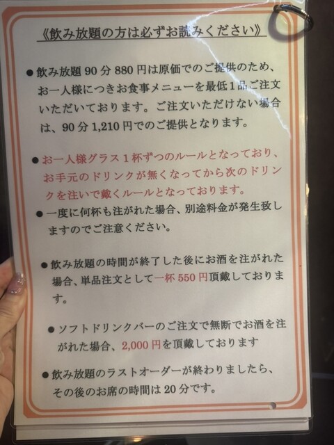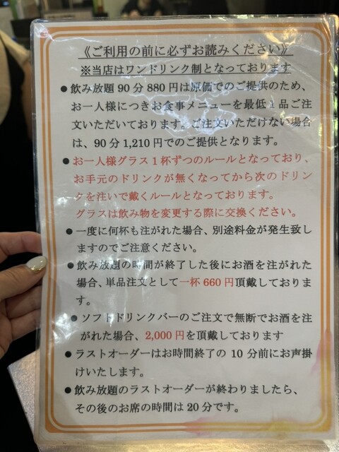アルコール飲み放題 880円よ