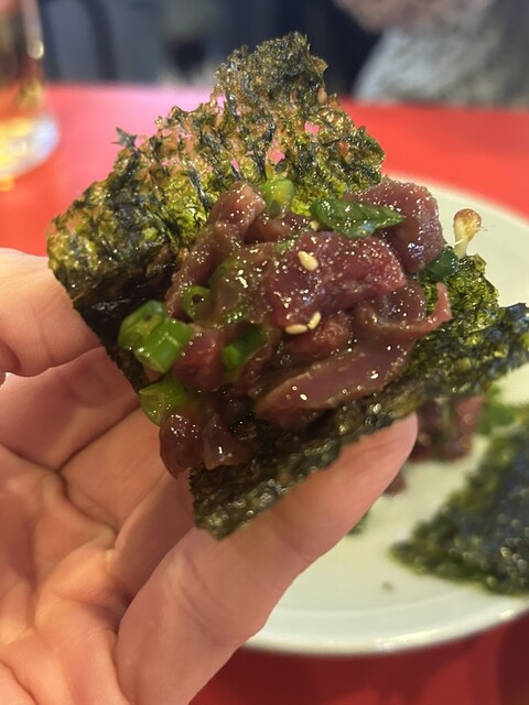 地下鉄新栄町駅から歩いて5分ほどの場所に2024年12月19日にオープンした韓国居酒屋です、さっそく平日の夜に利用してみました。店内はカウンター6席にテーブル4卓ほどの席数、それに2階席もあります。19時30分ころに入りましたがこの日はオープン記念で生ビールが100円ということもあってかほぼ満席と賑わっていました。 メニューは名物という赤タレ鶏もも串であるタッコチをはじめ、サムギョプサル串や... 詳細を見る