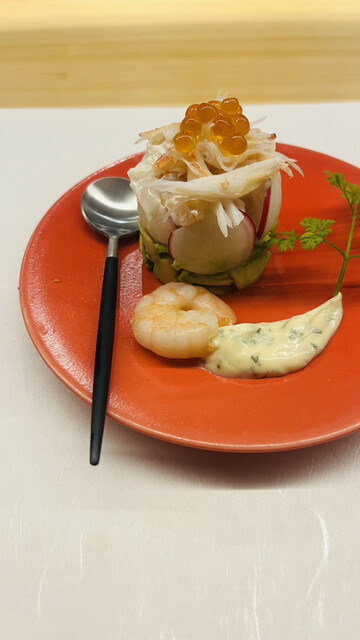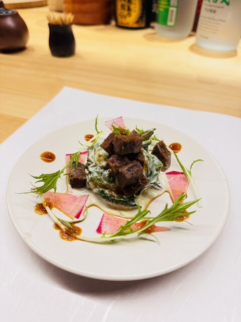 店長が厳選した旬の素材で作るおまかせコースをご提供。既存の和食の概念にとらわれず、目でも愉しめる創作日本料理をご堪能いただけます。選りすぐりの日本酒等とご一緒にどうぞ。店内は、完全予約制・カウンター6席のみの特別な空間。オープンキッチンの臨場感と、華やかで和モダンな雰囲気が、特別な一夜を演出します。接待やお祝いごと等の大切な日に、是非ご利用くださいませ。