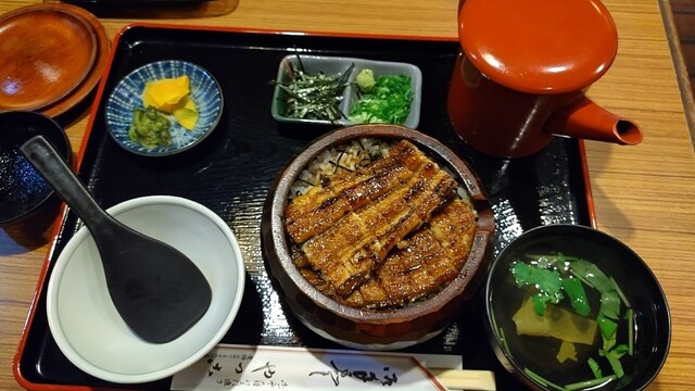 大須観音と商店街の観光で通り過ぎた商店街内の鰻屋さん。 創業100年以上の老舗、うなぎは蒸しではなく焼きと書いており、期待高まって開店前から待機。 入り口に名前記入用紙が用意されてました。 開店後にテーブル席にご案内いただきました。二階席もあるそうです。 色々食べたくて、和定食スペシャル... 詳細を見る