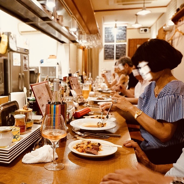 にぎやかでアットホームなカウンター席に沢山の人が集う大須の町の小さなのビストロ。