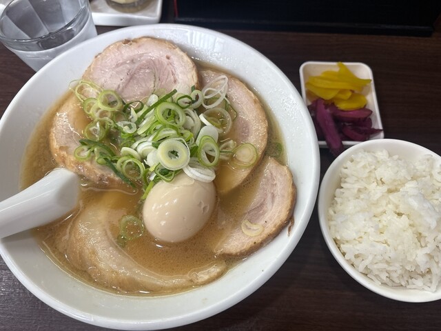 人気店だが平日の夜なので余裕の着席で、晩飯なので豪華にチャーシューめん。