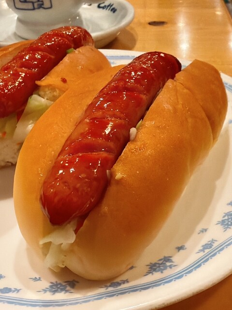 店内はまだまだ余裕があってすぐに座れました。小腹が空いていたので何か頼もうとおもうけど、バーガーやサンドはデカ過ぎる。で、結局ホットドッグ540円とブレンド520円を注文。